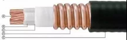 A. 導體:絞合銅導體;B. 絕緣:合成云母帶;C. 填充:無機材料;D. 銅套:縱包焊接并軋紋